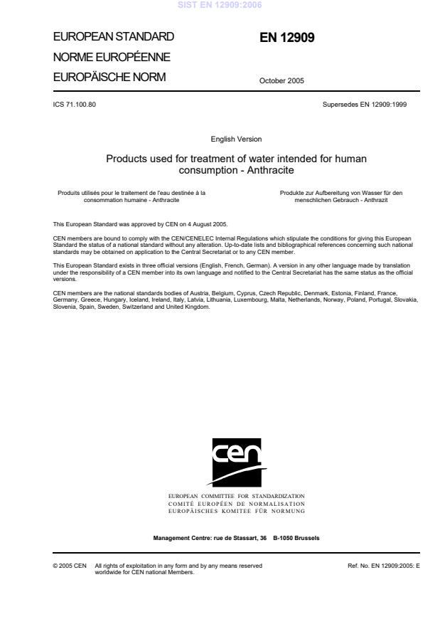 EN 12909:1999 - Products used for treatment of water intended for human consumption - Anthracite - Effective Date