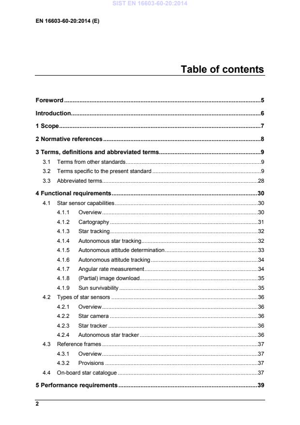 Standard EN 16603-60-20 določa zmogljivost sledilnika zvezd kot del vesoljskega projekta. Standard zajema vse vidike zmogljivosti, vključno z nomenklaturo, opredelitvami in meritvami uspešnosti za tehnične specifikacije zmogljivosti zvezdnih senzorjev. Standard se osredotoča na tehnične specifikacije. Druge vrste specifikacije, na primer za maso in moč, vzdrževalni podatki, vmesniki TM/TC in podatkovne strukture, ne sodijo v področje tega standarda. Gledano z vidika določenega konteksta projekta naj bi se zahteve iz tega standarda prilagodile tako, da se ujemajo z izvirnimi zahtevami posameznega profila in okoliščinami projekta. Ta standard se lahko prilagodi posameznim lastnostim in omejitvam vesoljskega projekta v skladu s standardom ECSS-S-ST-00.