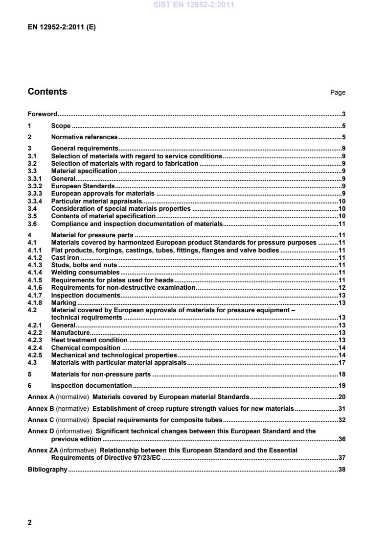 Relationship between this European Standard and the Essential Requirements of Directive 97/23/EC . 37Bibliography . 38SIST EN 12952-2:2011