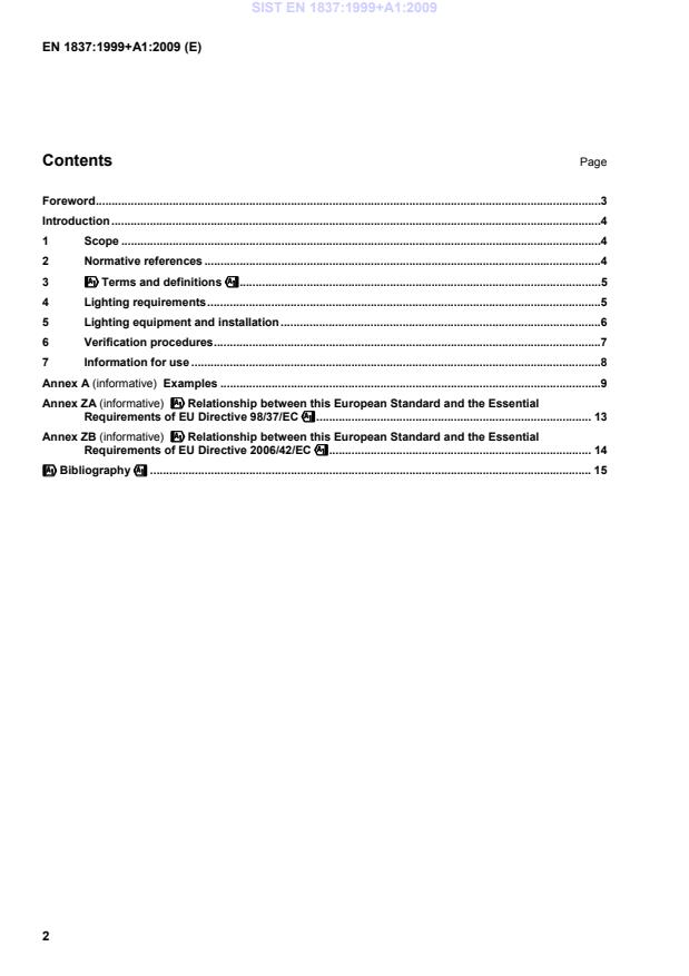 !!!!Relationship between this European Standard and the Essential Requirements of EU Directive 2006/42/EC"""" . 14!!!!Bibliography"""" . 15 SIST EN 1837:1999+A1:2009