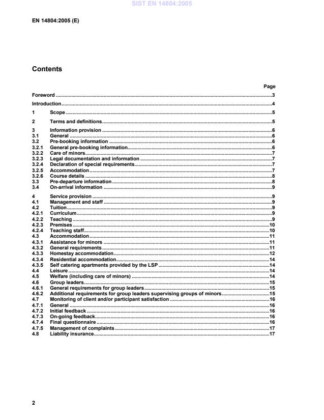 practical information and advice about living in the host country and about its culture. NOTE Late enrolments occur within six weeks or less prior to the commencement of the course. SIST EN 14804:2005