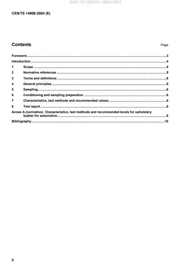 CEN/TS 14906:2004 is a technical specification published by the European Committee for Standardization (CEN). Its full title is "Leather - Upholstery leather characteristics - Guide for the selection of leather for automotive". This standard covers: This document gives guidelines for the test methods and recommended values for upholstery leather for automotive. This document also specifies the sampling and conditioning procedures of specimens.
