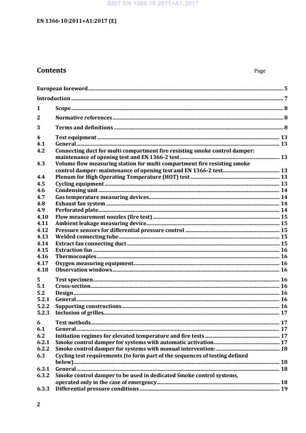 EN 12101-8 are met and EN 12101-8 needs to be considered before carrying out these tests. Smoke control dampers tested to this European Standard should be classified using EN 13501-4 and this European Standard needs to be considered before carrying out these tests. To this end this European Standard needs to be read in conjunction with EN 12101-8, EN 13501-4, EN 1366-2 and EN 1363-1, the latter giving further details for fire resistance testing. For installation details the requirements for smoke extraction ducts need to be considered and these are defined in EN 1366-8 and EN 1366-9. 2 Normative references The following referenced documents are indispensable for the application of this document. For dated references, only the edition cited applies. For undated references, the latest edition of the referenced document (including any amendments) applies. EN 1363-1, Fire resistance tests — Part 1: General Requirements EN 1366-2, Fire resistance tests for service installations — Part 2: Fire dampers EN 1366-8, Fire resistance tests for service installations — Part 8: Smoke extraction ducts EN 1366-9, Fire resistance tests for service installations — Part 9: Single compartment smoke extraction ducts EN 1507, Ventilation for buildings — Sheet metal air ducts with rectangular section — Requirements for strength and leakage EN 1751, Ventilation for buildings — Air terminal devices — Aerodynamic testing of damper and valves EN 13501-4, Fire classification of construction products and building elements — Part 4: Classification using data from fire resistance tests on components of smoke control systems EN ISO 5167-1, Measurement of fluid flow by means of pressure differential devices inserted in circular cross-section conduits running full — Part 1: General principles and requirements (ISO 5167-1:2003) EN ISO 13943:2010, Fire safety — Vocabulary (ISO 13943:2008) 3 Terms and definitions For the purposes of this document, the terms and definitions given in EN ISO 13943:2010 and the following apply. SIST EN 1366-10:2011+A1:2017