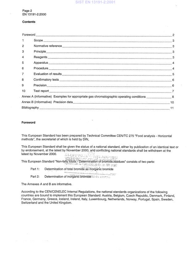 Keywords: EN 13191-2:2000, inorganic bromide determination, gas chromatography, bromide residues, non‑fatty food, maximum residue levels, food testing, CEN.