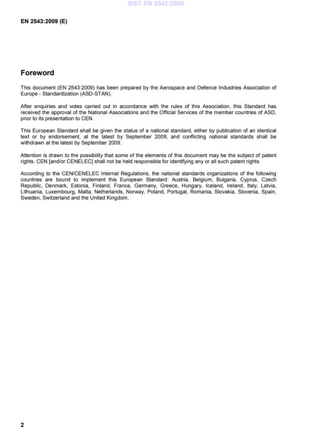 EN 2543:2009 has the following relationships with other standards: It is inter standard links to EN 4258:2024, EN 3712:2007, EN 3753:2010, EN 4084:2009, EN 2882:2006, EN 2590:2017, EN 2754:2006, EN 2866:2009, EN 3653:2010, EN 2862:2009, EN 2856:2006. Understanding these relationships helps ensure you are using the most current and applicable version of the standard.