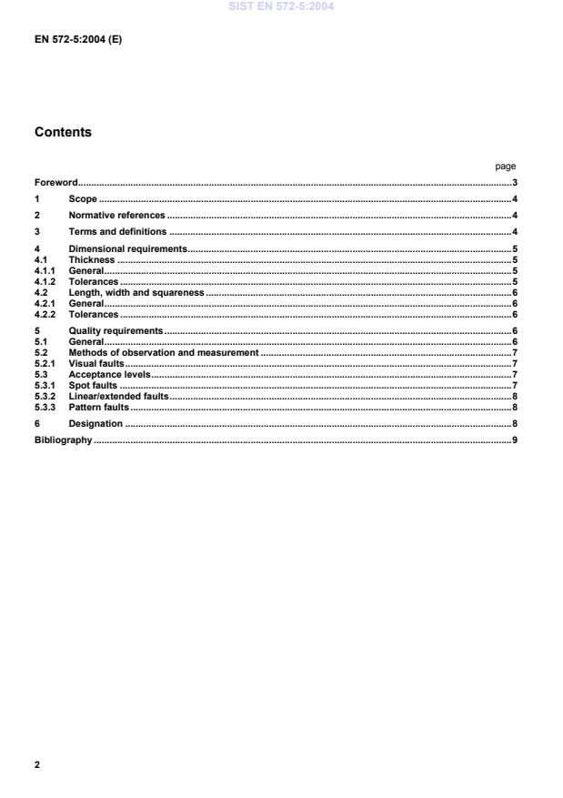 EN 572-5:2004 is a standard published by the European Committee for Standardization (CEN). Its full title is "Glass in Building - Basic soda lime silicate glass products - Part 5: Patterned glass". This standard covers: This Part of this European Standard specifies dimensional and minimum quality requirements (in respect of visual and pattern faults) for patterned glass as defined in EN 572-1, for use in building. This Part of this standard applies only to patterned glass supplied in rectangular panes and in stock sizes. EN 572-8 gives information on patterned glass in sizes other than those covered by this Part.