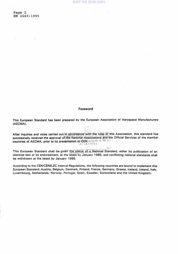 - Adopted nationally (SIST EN 2649:2001) and published in multiple languages for European aerospace industry use.