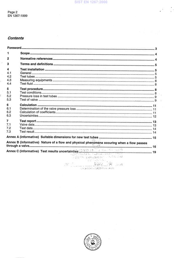 EN 1267:1999 is a standard published by the European Committee for Standardization (CEN). Its full title is "Valves - Test of flow resistance using water as test fluid". This standard covers: This standard specifies a method for determining the pressure loss and fluid flow rate through valves in piping systems using water as a test fluid. This method is suitable: - for valves with low dzeta values but higer than 0,1 by determining pressure loss, with respect to fluid flow rate and density; - and to valves with equal inlet and outlet nominal sizes. Note 1: Industrial- process control valves are tested to EN 60534-2-3.