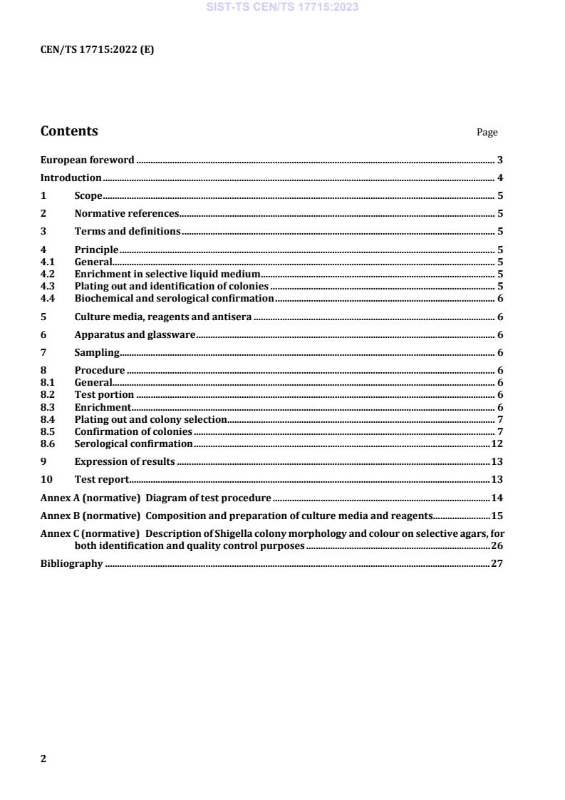 CEN/TS 17715:2022 is a technical specification published by the European Committee for Standardization (CEN). Its full title is "Plant biostimulants - Detection of Shigella spp.". This standard covers: This document provides a method for verifying that the pathogen Shigella spp. is not present in microbial plant biostimulants in a concentration that exceeds the respective limits outlined in the EU Regulation on Fertilising Products. The detection method for Shigella pathogens is not sensitive and quantification is rarely performed. Detection is usually performed using an enrichment medium followed by subculturing onto a variety of selective media.