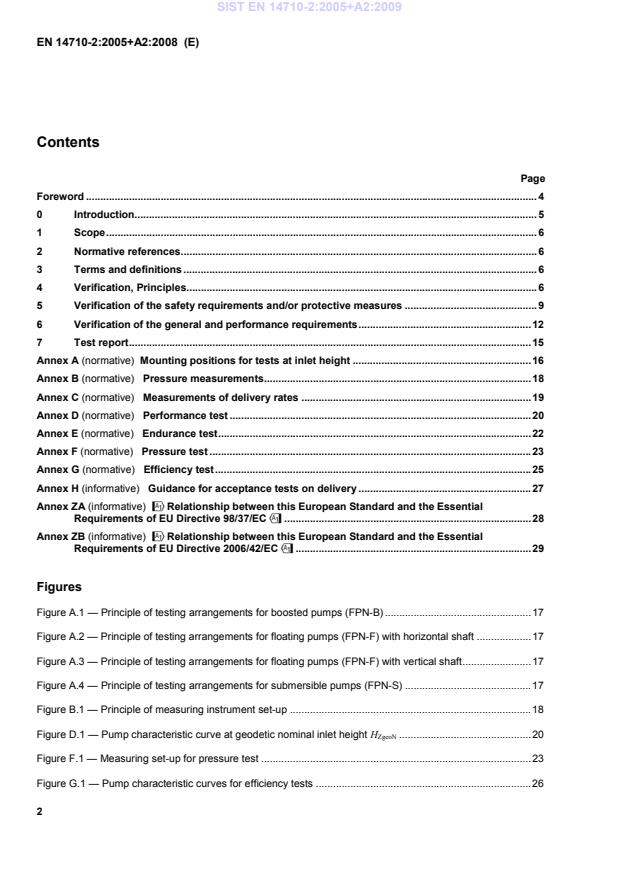 Figures Figure A.1 — Principle of testing arrangements for boosted pumps (FPN-B) . 17 Figure A.2 — Principle of testing arrangements for floating pumps (FPN-F) with horizontal shaft . 17 Figure A.3 — Principle of testing arrangements for floating pumps (FPN-F) with vertical shaft . 17 Figure A.4 — Principle of testing arrangements for submersible pumps (FPN-S) . 17 Figure B.1 — Principle of measuring instrument set-up . 18 Figure D.1 — Pump characteristic curve at geodetic nominal inlet height HZgeoN . 20 Figure F.1 — Measuring set-up for pressure test . 23 Figure G.1 — Pump characteristic curves for efficiency tests . 26 SIST EN 14710-2:2005+A2:2009