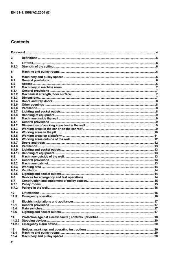 Safety rules for the construction and installation of lifts - Part 1: Electric lifts - A2: Machinery and pulley spaces