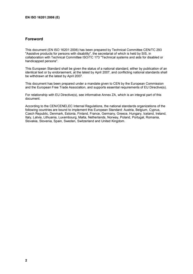 EN ISO 16201:2006 is classified under the following ICS (International Classification for Standards) categories: 11.180.01 - Aids for disabled and handicapped persons in general. The ICS classification helps identify the subject area and facilitates finding related standards.