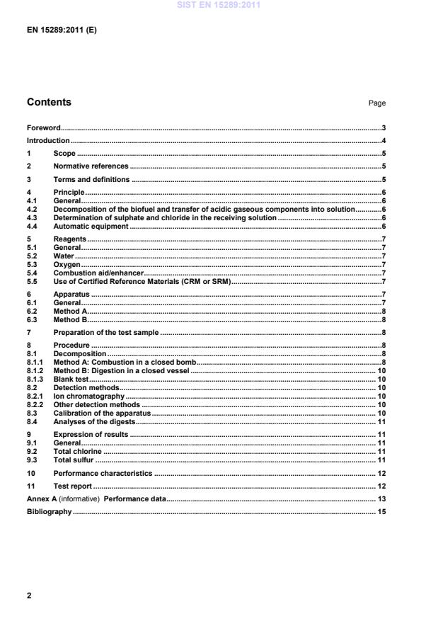 Performance data . 13Bibliography . 15 SIST EN 15289:2011