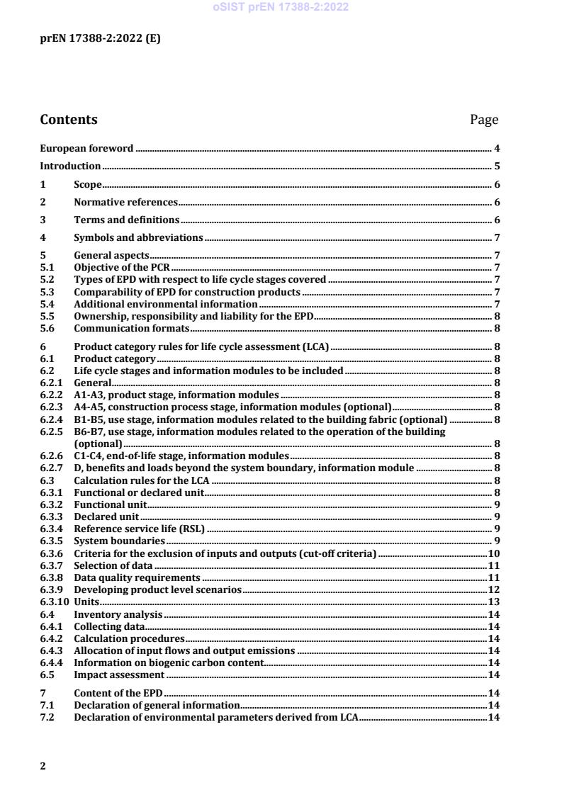 prEN 17388-2 defines Product Category Rules (PCR) for preparing Environmental Product Declarations (EPD) for reinforced bitumen, plastic and rubber flexible sheets for roof waterproofing. It is the PCR for a cradle-to-gate with options EPD (covering product stage A1–A3, end-of-life modules C1–C4 and module D, with A4–A5 and B1–B7 optional). The document sets the methodological and reporting rules needed to produce verified, comparable EPDs for roofing waterproofing membranes.