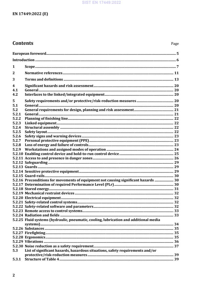 기사 제목: EN 17449: 2022 - 기계 안전 - 금속 스트립 마무리 라인의 안전 요구 사항 기사 내용: 이 문서는 금속 스트립 마무리 라인에 대한 일반적인 안전 요구 사항을 규정하며, 여기서는 마무리 라인이라고 지칭됩니다. 이 문서는 제조업자가 설계한 대로 사용되고 예상되는 조건에서 사용될 때 마무리 라인에 대해 중요한 위험, 위험 상황 및 사건을 다룹니다. 이 문서는 운송, 기동, 작동 및 비작동, 장비에서 발생할 수 있는 예상 가능한 장애 또는 기능 장애에 대한 제조업자가 충족해야 할 요구 사항을 제공합니다 (4장과 5장 참조). 이 문서는 다음에 적용됩니다: 금속 스트립/금속 호일의 고객별 가공을 위한 설비 (기계, 장비, 장치) (원료: 코일로서의 열간 압연 혹은 굴림 스트립), 원료 공급(1)부터 마무리 공정(2) 및 소재 제거(3)까지 (그림 1의 예시적 배치 참조). 이 문서의 적용 범위에 포함되는 마무리 라인 및 해당 기계/장비의 예시는 다음과 같습니다: - 슬리팅 라인 (그림 2 참조); - 길이 조절 라인 (그림 3 참조); - 급입 라인 (그림 4 참조); - 블랭킹 라인; - 트리밍 라인; - 라운딩 기계; - 스트립 가장 라인; - 검사 라인; - 되감기 라인, 분리기 라인, 이중 라인; - 스트립 공급 라인 (예: 프레스나 롤 편성 라인용); - 마무리 라인의 일부가 될 수 있는 상호 연결된 기계/장비 등: - 코일 이송 (공급, 끼우기, 밀어 넣기, 안내 및 운반 등); - 스트레칭, 굴곡, 레벨링 기계; - 표시 기계; - 리코일러 및 언코일러; - 전단기; - 펀칭 기계; - 코일 및 슬리브 처리 장치; - 용접 기계; - 오일링 기계; - 스크랩 잘라내기, 스크랩 감기, 스크랩 컨베이어; - 교환 장치; - 적재 장치; - 라인과 관련된 코일 이송 장치; - 측정 시스템 및 장치; - 유체 시스템. 다음 기계는 마무리 라인에 속할 수 있거나 연결될 수 있지만, 이 문서에는 해당되지 않습니다. - 포장 라인 (EN 415); - 롤 편성 라인; - 도장 및 적층 기계; - 새김 기계; - 톱; - 플레이트 측단기 (원료로서의 플레이트) (EN 13985); - 재료 표면에 미디어를 적용 (제거)하기 위한 장비; - 라인의 경계를 벗어난 코일 이송 장치 (예: 창고로부터 공급); - 프레스 (EN ISO 16092-1, EN ISO 16092-2 및 EN ISO 16092-3); - 밀링 기계 (EN ISO 16090-1); - 스트립 가공 (예: 용접, 절단)을 위한 레이저 사용 기계 (EN ISO 11553); - 펀칭 기계 (독립적인 기계로서); - 크레인; - 로봇 (EN ISO 10218); - 별도의 미디어 시스템 (예: 압축 공기 시스템, 배기 시스템); - 저장 장비. 현대화 작업에는이 문서를 현대화 할 부분에 적용할 수 있습니다.