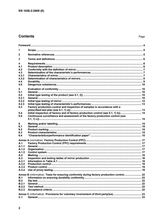 Keywords: EN 1036-2:2008, mirrors, silver-coated float glass, evaluation of conformity, factory production control, CE marking, product standard, internal use.