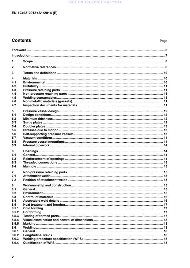 EN ISO 14000 series (see [6], [7] and [8]). Provisions need to be restricted to a general guidance. Limit values are specified in national laws. It has been assumed in the drafting of this European Standard that the execution of its provisions is entrusted to appropriately qualified and experienced people. All pressures are gauged unless otherwise stated. NOTE This European Standard requires measurement of material properties, dimensions and pressures. All such measurements are subject to a degree of uncertainty due to tolerances in measuring equipment, etc. It might be beneficial to refer to the leaflet “measurement uncertainty leaflet" SP INFO 2000 27 [13]. SIST EN 12493:2013+A1:2014