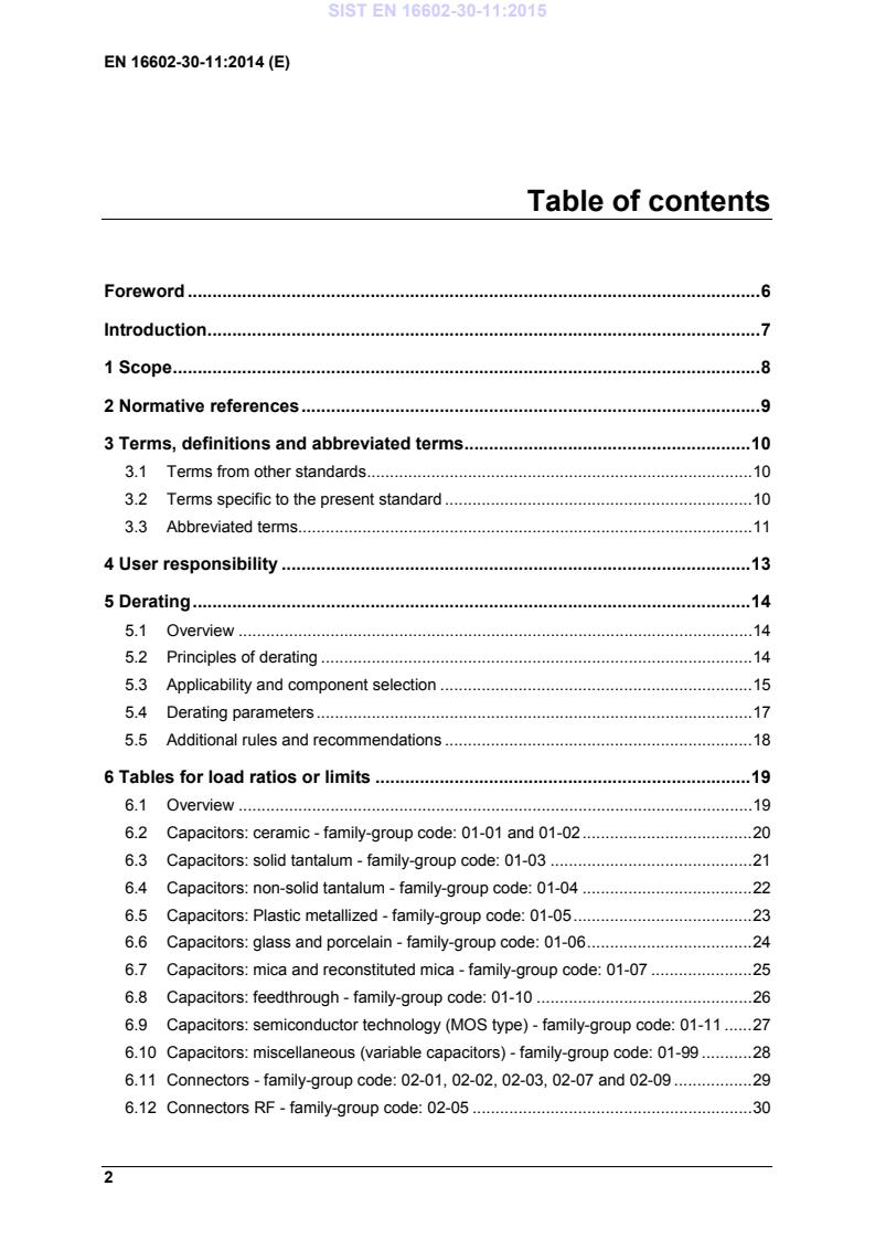 Tabless Table 6-1: Derating of parameters for capacitors family-group code 01-01 and 01-02 . 20 Table 6-2: Derating of parameters for capacitors family-group code 01-03 . 21 Table 6-3: Derating of parameters for capacitors family-group code . 22 SIST EN 16602-30-11:2015