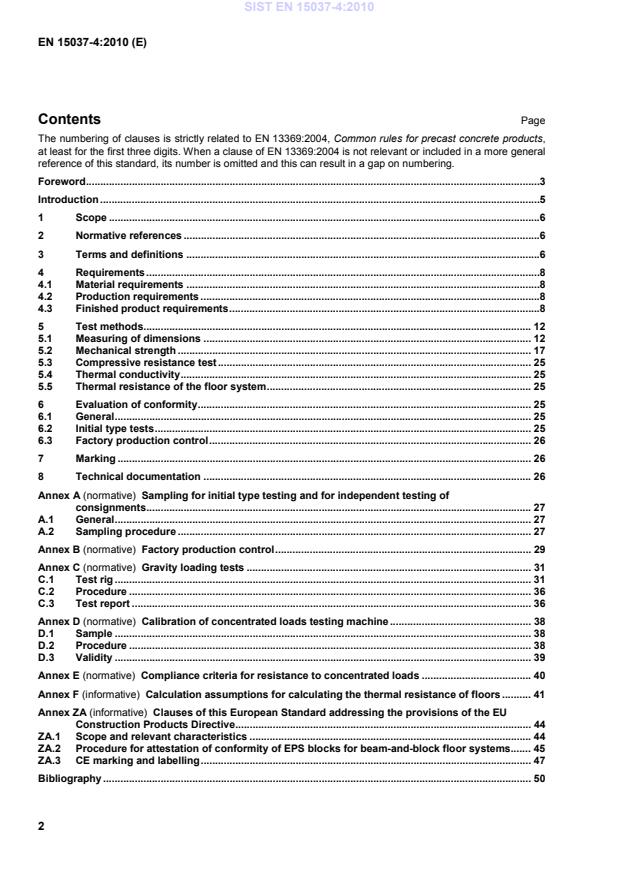 Clauses of this European Standard addressing the provisions of the EU Construction Products Directive . 44ZA.1 Scope and relevant characteristics . 44ZA.2 Procedure for attestation of conformity of EPS blocks for beam-and-block floor systems. 45ZA.3 CE marking and labelling . 47Bibliography . 50 SIST EN 15037-4:2010