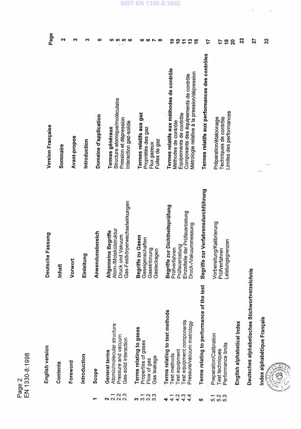 EN 1330-8:1998 is a standard published by the European Committee for Standardization (CEN). Its full title is "Non-destructive testing - Terminology - Part 8: Terms used in leak tightness testing". This standard covers: This European Standard defines the terms used in leak testing.