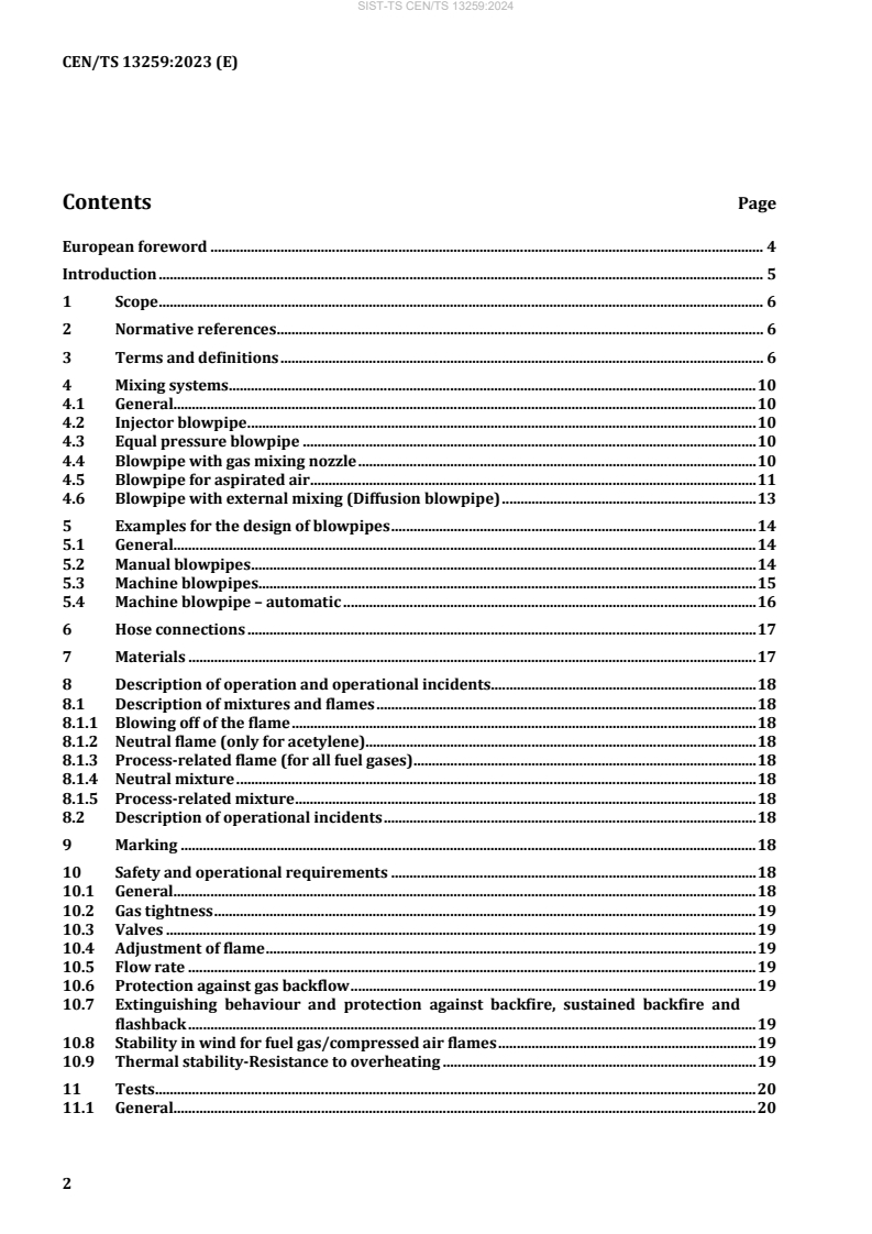 Keywords: gas welding equipment, industrial blowpipes, manual blowpipes, machine blowpipes, flame heating, flame brazing, CEN/TS 13259, gas welding standard.