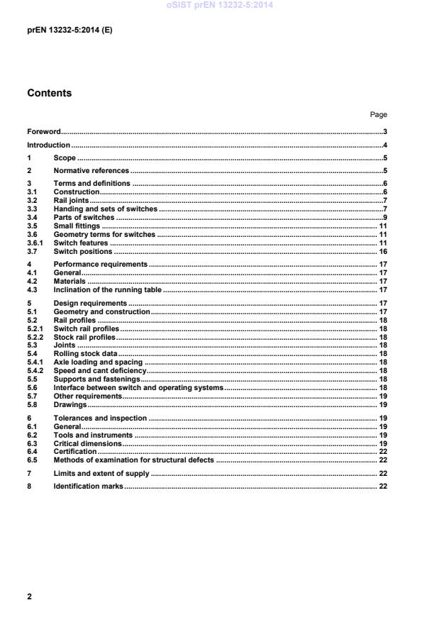 - Scope and purpose: Establishes working definitions for switches, constituent parts and main types (e.g. flexible switches, spring‑rail switches, loose‑heel/pivot switches); defines limits and scope of supply and traceability/identification requirements.