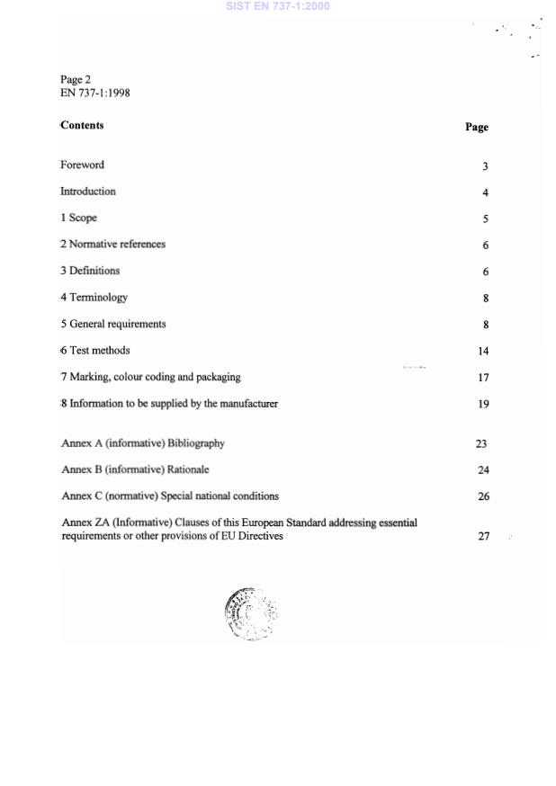 Ta slovenski standard je istoveten z: EN 737-1:1998