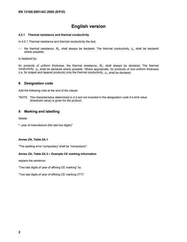 B-1050 Brussels© 2005 CENAll rights of exploitation in any form and by any means reserved worldwide for CEN national Members.Tous droits d'exploitation sous quelque forme et de quelque manière que ce soit réservés dans le monde entier auxmembres nationaux du CEN.Alle Rechte der Verwertung, gleich in welcher Form und in welchem Verfahren, sind weltweit den nationalen Mitgliedernvon CEN vorbehalten.Ref. No.:EN 13165:2001/AC:2005 D/E/F