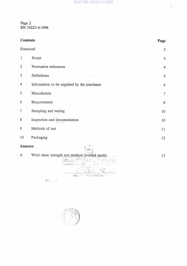 EN 10223-4:1998 is a standard published by the European Committee for Standardization (CEN). Its full title is "Steel wire and wire products for fences - Part 4: Steel wire welded mesh fencing". This standard covers: This part of this European Standard specifies requirements for steel wire weldedmesh fencing, of which there are many types for a variety of applications. It specifies the general characteristics of welded mesh fencing supplied as rolls or panels and coatings, properties and tolerances. The standard covers only orthogonal welded mesh i.e. wire welded at right angles to one another. For welded mesh fencing made from panels the specification covers only panels made from wires not greater than 10 mm.