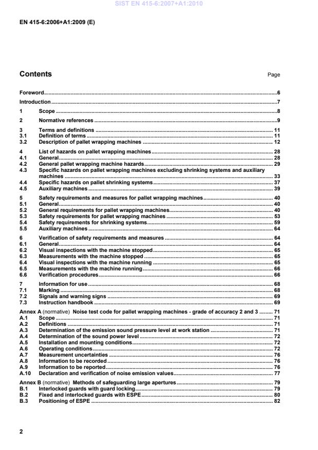 Methods of safeguarding large apertures . 79B.1Interlocked guards with guard locking . 79B.2Fixed and interlocked guards with ESPE . 80B.3Positioning of ESPE . 82SIST EN 415-6:2007+A1:2010