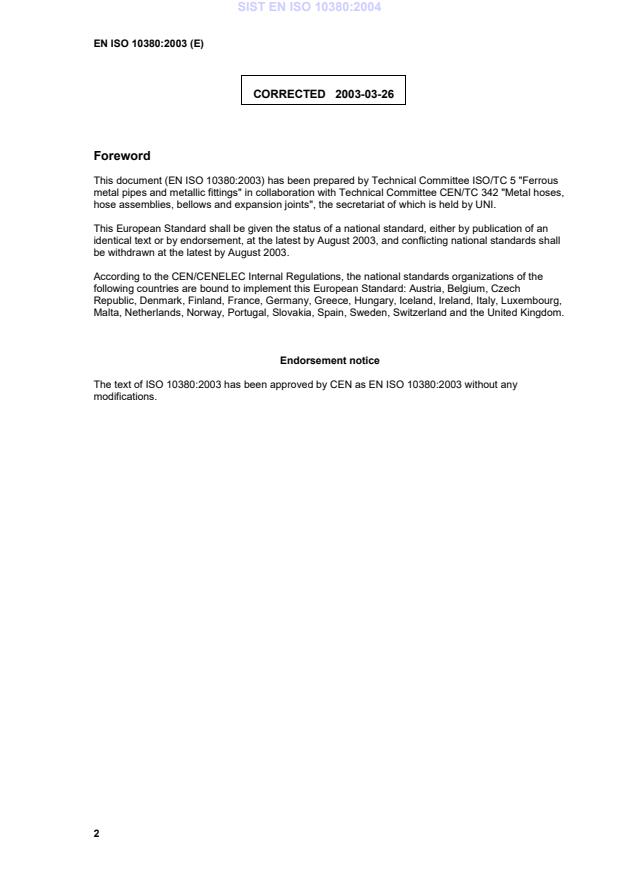 This document (EN ISO 10380:2003) has been prepared by Technical Committee ISO/TC 5 "Ferrous