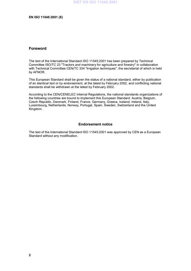 EN ISO 11545:2001 is classified under the following ICS (International Classification for Standards) categories: 65.060.35 - Irrigation and drainage equipment. The ICS classification helps identify the subject area and facilitates finding related standards.