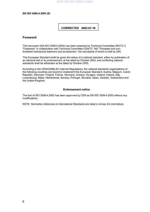 This document (EN ISO 3506-4:2003) has been prepared by Technical Committee ISO/TC 2