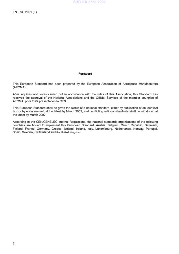 Ta slovenski standard je istoveten z: EN 3730:2001