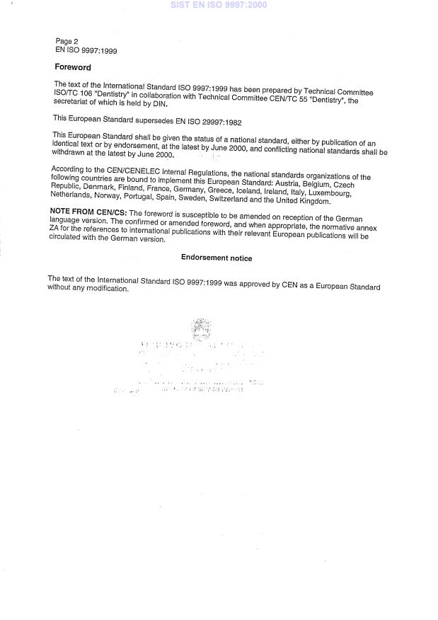 International Standard ISO 9997 was prepared by Technical Committee ISO/TC 106, Dentistry, Subcommittee