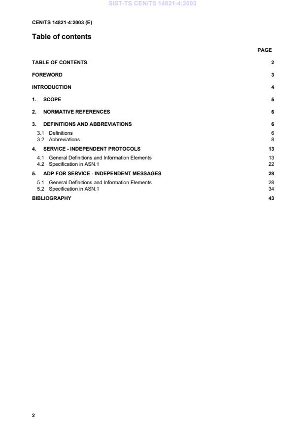 CEN/TS 14821-4:2003 is a technical specification published by the European Committee for Standardization (CEN). Its full title is "Traffic and Travel information (TTI) - TTI messages via cellular networks - Part 4: Service-independent protocols". This standard covers: This technical specification defines the specific interfaces and functionality of traffic telematics (TT) services based on the use of cellular networks. Device manufacturers are enabled to develop terminal equipment compatible to services based on this standard. This will allow for interoperability of different terminal equipment and service providers which allows competition between service providers and terminal manufacturers. Furthermore it sets the scene for international availability of these services. This technical specification specifies - TT-specific interfaces between terminal and service centre. This especially incorporates the message sets of the application data protocols and the service-independent communication handling (including conditional access and transport protocols). - Functionality, procedures and requirements of basic terminal components as well as their interaction with the service centre. This especially comprises conditional access and security mechanisms. - Service Specifications, which are essential to ensure consistent behaviour of terminal and service centre. The services incorporated within this issue comprise: - breakdown and emergency services - interactive traffic information services - broadcast traffic information services - navigation services (route assistance, route advice, homing) - operator services - general information services - floating car data collection It is envisaged that future research and development will lead to improvements on the services listed above as well as to the creation of new services. Nevertheless this technical specification provides the framework for seamless integration of new features and services into the existing architecture.