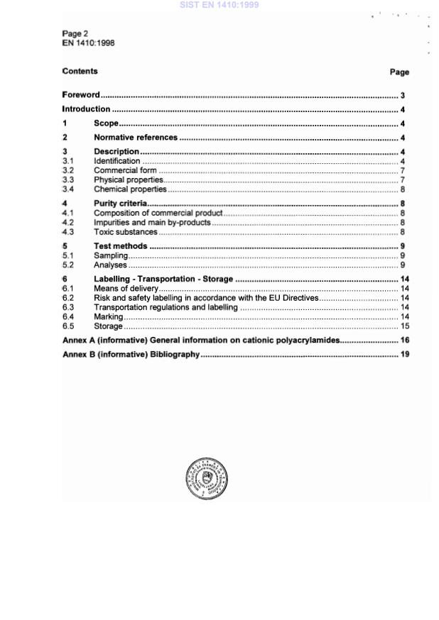 2003-01.Slovenski inštitut za standardizacijo. Razmnoževanje celote ali delov tega standarda ni dovoljeno.Kemikalije, ki se uporabljajo za pripravo pitne vode – Kationski poliakrilamidiProdukte zur Aufbereitung von Wasser für den menschlichen Gebrauch - Kationische PolyacrylamideProduits chimiques utilisés pour le traitement de l'eau destinée a la consommation humaine - Polyacrylamides cationiquesChemicals used for treatment of water intended for human consumption - Cationic polyacrylamides71.100.80Chemicals for purification of water13.060.20Pitna v