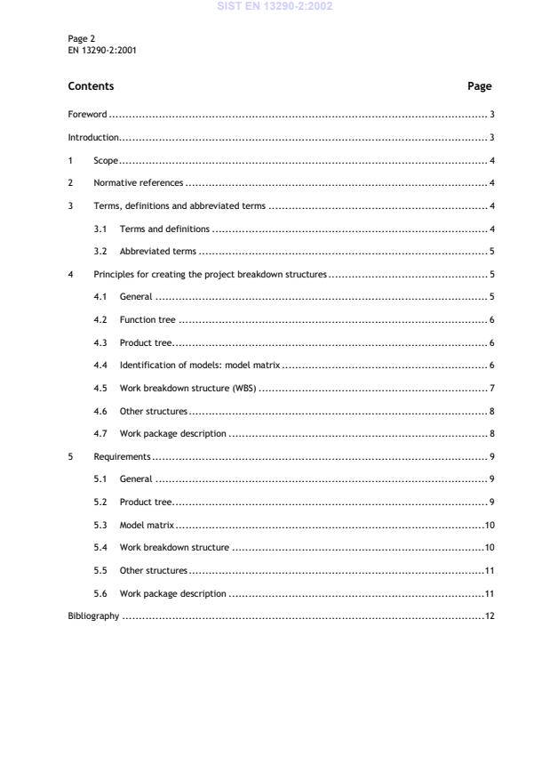 EN 13290-2:2001 is a standard published by the European Committee for Standardization (CEN). Its full title is "Space project management - General requirements - Part 2: Project breakdown structure". This standard covers: The present document "Project breakdown structures" is part of a collection of space standards belonging to the management branch. In order to create the reference system for project management necessary for implementation of a project and ensure consistency, the project shall be broken down into a unique, orderly and exhaustive manner, to allow unambiguous identification of the associated products and models, as well as the tasks and resources necessary. The aim of this space standard is to define the principles to be respected for setting up, using and adapting the breakdown structures and implementing them into a project.