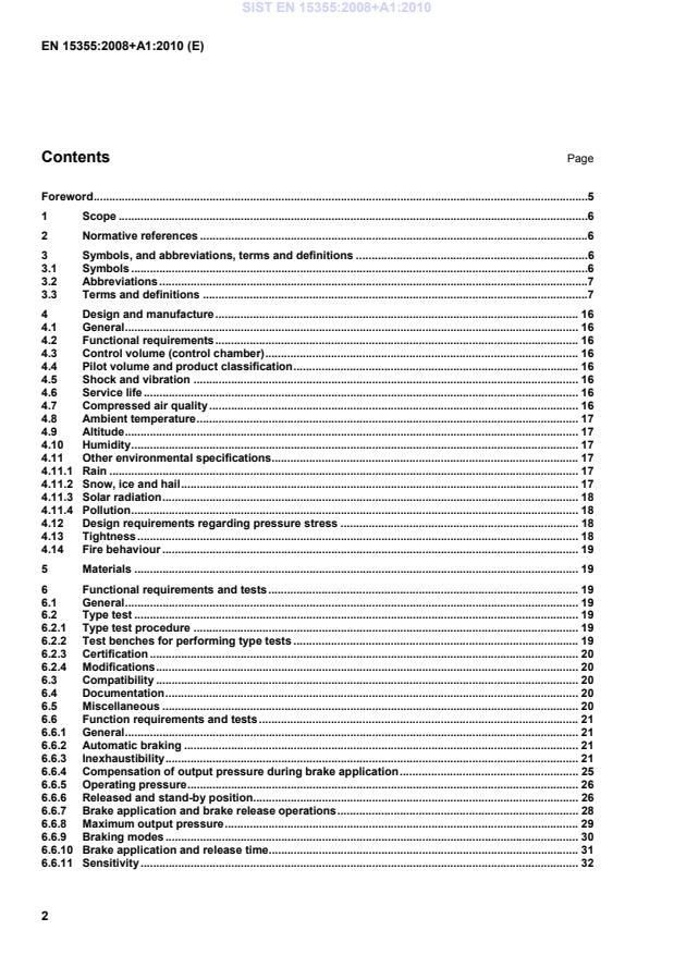 !!!!Relationship between this European Standard and the Essential Requirements of EU Directive 2008/57/EC of the European Parliament and of the Council of 17 June 2008 on the interoperability of the rail system within the Community (Recast)"""" . 59!!!!deleted text"""" Bibliography . 65 Figures Figure 1 — Distributor valve – Main function, block diagram . 7Figure 2 — Distributor valve – Main function, pressure diagram. 8Figure 3 — Service and emergency brake application . 9Figure 4 — Emergency braking (emergency brake application) . 10Figure 5 — Brake release . 11Figure 6 — Sensitivity respectively insensitivity areas and limits . 13Figure 7 — Inshot function, comparision between output pressure development with and without inshot function . 14Figure 8 — Test 6.6.3.2-1 . 22Figure 9 — Test 6.6.3.2-2 recorded on the first single wagon . 24Figure 10 — Test 6.6.4-1 . 25Figure 11 — Test 6.6.4-2 . 26Figure 12 — Test 6.6.6-1 . 27Figure 13 — Test 6.6.6-2 . 28Figure 14 — Test 6.6.6-3 . 28SIST EN 15355:2008+A1:2010