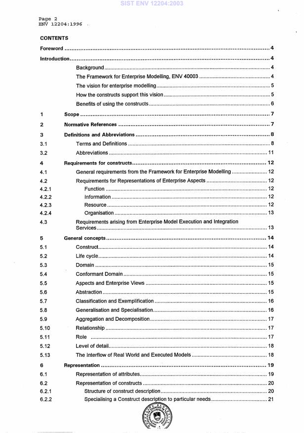 ENV 12204:1996 is a standardization document published by the European Committee for Standardization (CEN). Its full title is "Advanced Manufacturing Technology - Systems Architecture - Constructs for Enterprise Modelling". This standard covers: This ENV constitutes a European PreStandard on Constructs for Enterprise Modelling, supporting the Views defined in ENV 40 003, CIM systems architecture framework for modelling. It contains definitions and descriptions of the common constructs necessary for computer-based modelling of enterprises, focusing on Discrete Parts Manufacturing. Models generated using constructs in accordance with this framework will be computer processable and ultimately enable the daily operations of an enterprise to be run, monitored and controlled by such models.