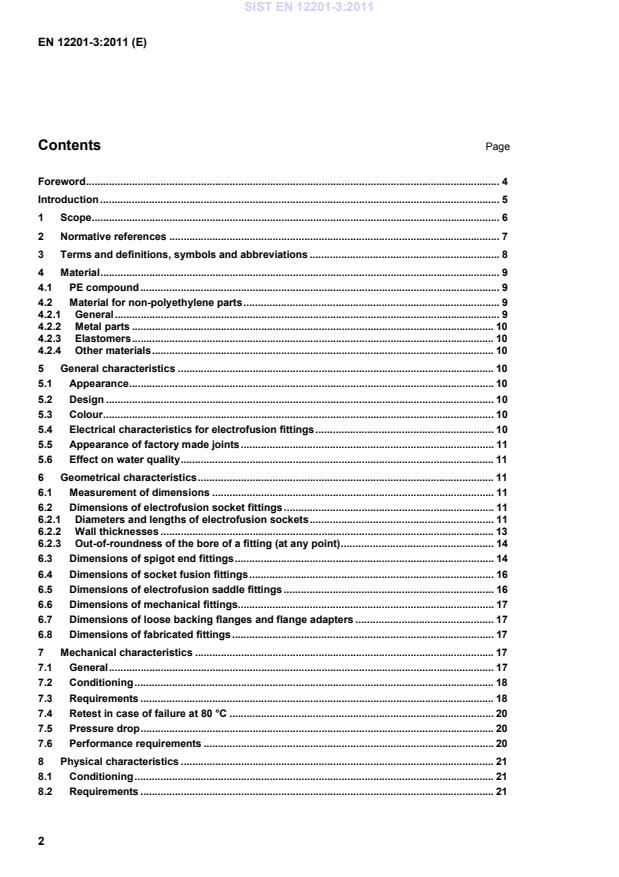 Ta del EN 12201 določa značilnosti fitingov iz polietilena (PE), ki so namenjeni prenosu vode za prehrano ljudi, vključno z neobdelano vodo pred obdelavo. Določa tudi preskusne parametre za preskusne metode, navedene v tem standardu. Skupaj z drugimi deli EN 12201 velja za PE-fitinge, njihove spoje in spoje s komponentami iz PE in drugih materialov, namenjene uporabi v naslednjih pogojih: a) najvišji obratovalni tlak, MOP, do vključno 25 bar, b) obratovalna temperatura 20°C kot referenčna temperatura.