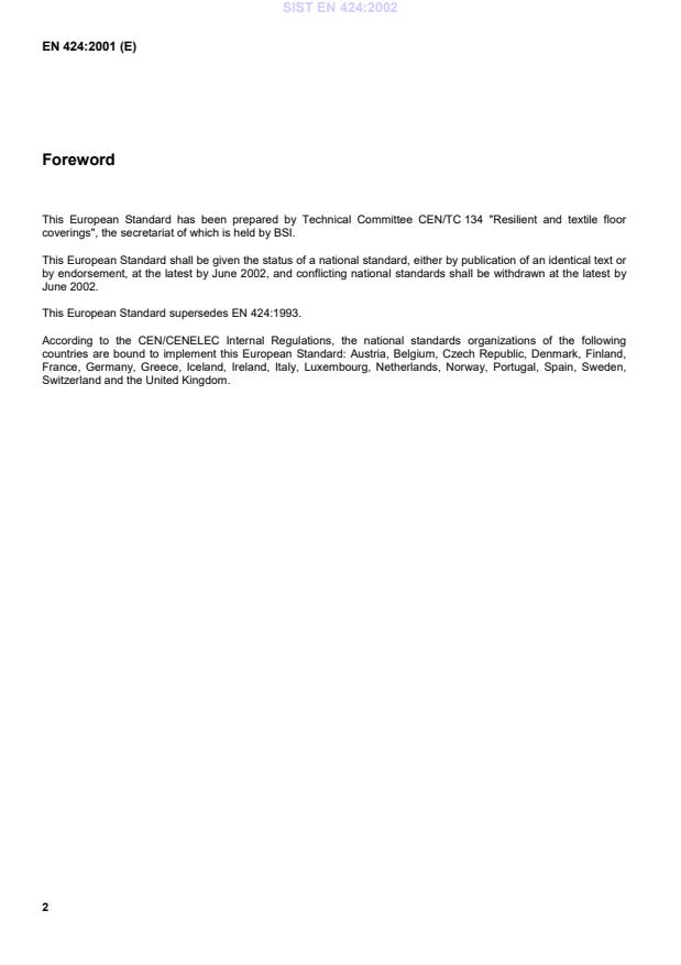 EN 424:2001 is classified under the following ICS (International Classification for Standards) categories: 97.150 - Floor coverings. The ICS classification helps identify the subject area and facilitates finding related standards.