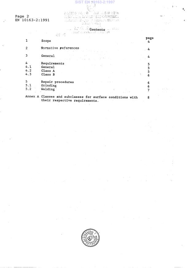 EN 10163-2:1991 is a standard published by the European Committee for Standardization (CEN). Its full title is "Delivery requirements for surface condition of hot rolled steel plates, wide flats and sections - Part 2: Plate and wide flats". This standard covers: This part 2 in addition to part 1 specifies the delivery requirements which apply to the surface quality of host-rolled plates and wide flats with thicknesses of 3 mm ¿ e ¿ 250 mm. NOTE: For plate with a thickness > 250 mm special agreements should be made at the time of enquiry and order.
