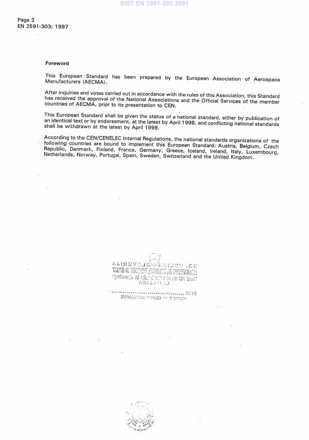 EN 2591-303:1997 has the following relationships with other standards: It is inter standard links to EN 3660-005:2023, EN 3155-076:2012, EN 4639-102:2007, EN 3155-075:2022, EN 3155-024:2006, EN 3155-071:2007, EN 3155-026:2019, EN 3155-058:2006, EN 3155-070:2019, EN 3155-027:2019, EN 3155-025:2006, EN 2349-407:2006, EN 3155-045:2019, EN 3155-075:2009, EN 3155-056:2006. Understanding these relationships helps ensure you are using the most current and applicable version of the standard.