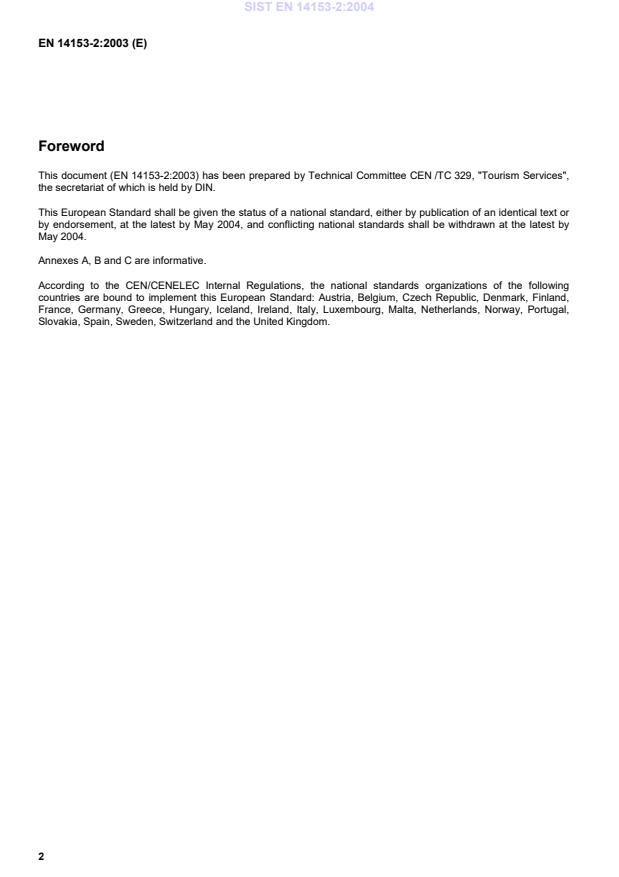 EN 14153-2:2003 is classified under the following ICS (International Classification for Standards) categories: 03.080.30 - Services for consumers; 03.200 - Leisure. Tourism; 03.200.99 - Other standards relating to leisure and tourism. The ICS classification helps identify the subject area and facilitates finding related standards.