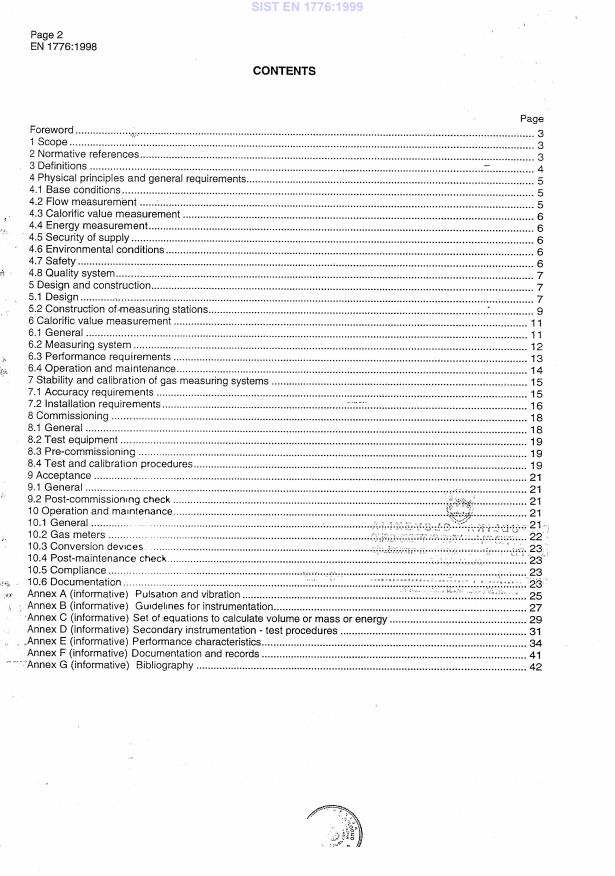 EN 1776:1998 is a standard published by the European Committee for Standardization (CEN). Its full title is "Gas supply systems - Natural gas measuring stations - Functional requirements". This standard covers: This European standard specifies functional requirements for the design, construction, commissioning, operation and maintenance of new gas measuring stations for non-domestic custody transfer of natural gas as described in ISO/DIS13686 with a design capacity equal to or greater than 500 m3/h (at base conditions, see 4.1) and for operating pressures equal to or greater than 1bar (gauge pressure). NOTE: Installations using diaphragm gas meters as primary measuring instruments are not covered by this standard.
