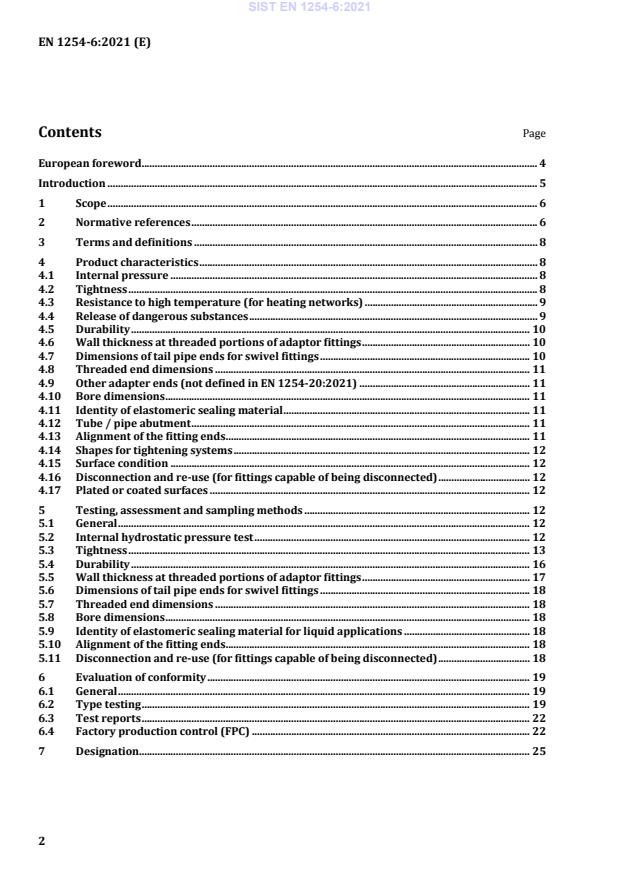 EN 1254-6:2021 is a standard published by the European Committee for Standardization (CEN). Its full title is "Copper and copper alloys - Plumbing fittings - Part 6: Push-fit fittings for use with metallic tubes, plastics and multilayer pipes". This standard covers: This document specifies product characteristics, assessment methods, compliance criteria of test results and a designation system for push-fit fittings for the purpose of joining tubes of copper, plated copper, multilayer pipes and plastics pipes. The fitting ends have a nominal diameter from 6 mm to 54 mm. The fittings are designed for a service lifetime up to fifty years. This document is applicable to push-fit fittings for joining one or more of the following tubes or pipes: - copper tubes to EN 1057. The fittings are used up to the operating temperatures and corresponding maximum operating pressures as indicated in Annex A. This document applies to copper alloy fittings. A non-exhaustive list of these copper alloys is given in CEN/TS 13388. Adaptor fittings may combine push-fit ends with fitting ends defined in the other parts of EN 1254. Push-fit fittings for metallic tubes may also have flanged end connections according to EN 1092-3. Push-fit fittings may also have a plated or other decorative surface coating. Fittings can be produced by machining, metal forming, casting, or fabrication. Products covered by this document are intended to be used in liquid applications: - hot, cold or combined hot and cold water, including systems according to EN 806; - closed heating systems according to EN 12828; - cooling systems; - drainage systems; - fire protection systems including sprinkler systems according to EN 12845.