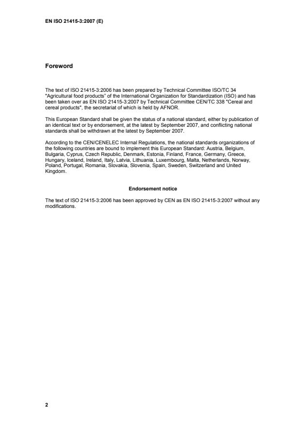 been taken over as EN ISO 21415-3:2007 by Technical Committee CEN/TC 338 "Cereal and