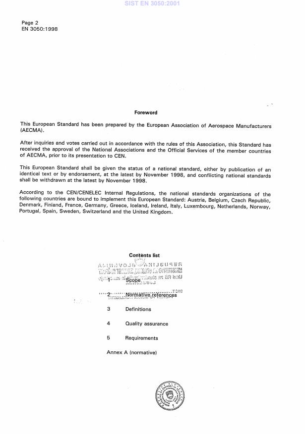- Applicability clause: Clarifies that EN 3050 is applicable whenever it is referenced in procurement or design specifications.
