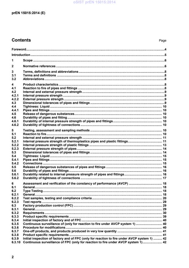 prEN 15015 - published by CEN - is a draft European standard for plastics piping systems used in hot and cold water and building heating systems. It specifies the requirements and test/assessment methods for pipes and fittings (excluding adhesives, joint sealings and gaskets). The standard covers product characteristics, sampling, type testing and factory production control to support conformity assessment and CE marking for building applications (see Annex ZA for links to EU provisions).